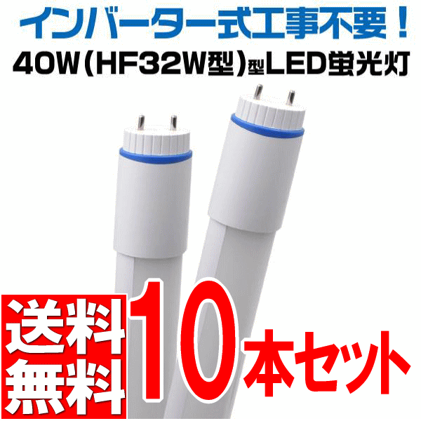 送料無料 10本セット 2年保証付き! LED蛍光灯 120cm HF型インバーター専用 40w型(HF32W型) 18W 乳白色カバータイプ 口金G13 全光束2000lm 直管 昼白色相当 直管型 40W形 1198mm 色温度5000K 口金回転式 照明器具 直管形 高輝度タイプ インバーター式工事不要